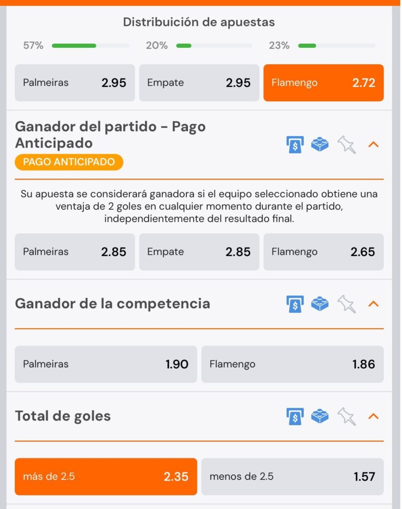 Esta opción es ideal si conocés en profundidad a los equipos y/o jugadores y querés maximizar tus beneficios con jugadas bien analizadas.